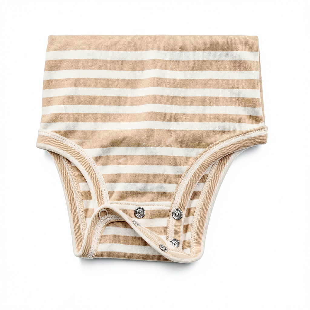 - Rib trim at neckline and leg openings for a secure, gentle fit